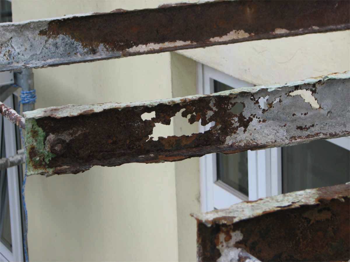 Zwei Häuser, Baujahr 1912, mit Balkonen, deren Standsicherheit nicht mehr gewährleistet war. Nach dem Abbruch der Estrichflächen und Betonfüllungen wurde festgestellt, dass die gesamten Träger der Balkone und teilweise die wandseitigen Auflageträger erneuert werden mussten.